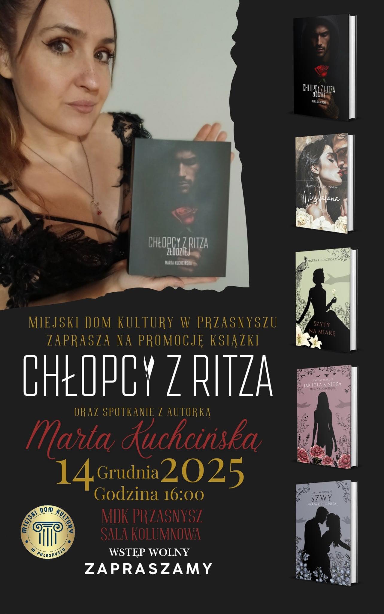 Serdecznie zapraszamy 14 grudnia na promocję książki oraz spotkanie autorskie z Martą Kuchcińska - autorką i projektantką, która łączy dwie pasje: modę i literaturę. Pokazuje, że kreatywność może przybierać różne formy. Jej historia i dorobek to przykład artystycznej wszechstronności i odwagi, by rozwijać się na wielu płaszczyznach.